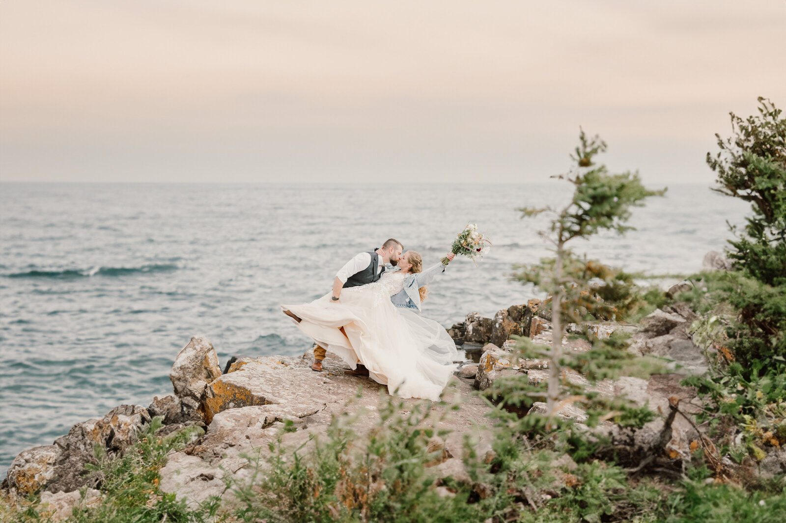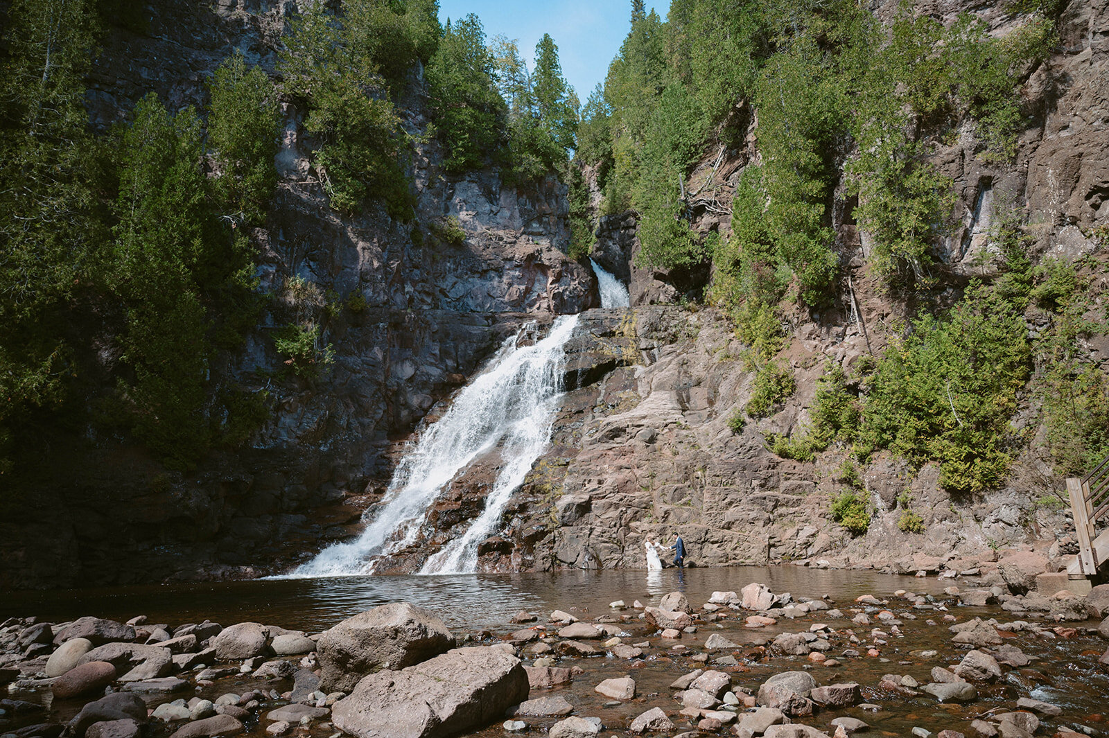 Haley and Cole’s full day elopement in Tettegouche State Park was wildly beautiful. They shared private vows at a waterfall, returned to their cabin for an intimate family ceremony and reception, and wrapped up the day with blue hour at a private cave beach. From those quiet waterfall vows to a secret beach at sunset, this adventure reflected their love so perfectly, and I’m honored I got to capture it.