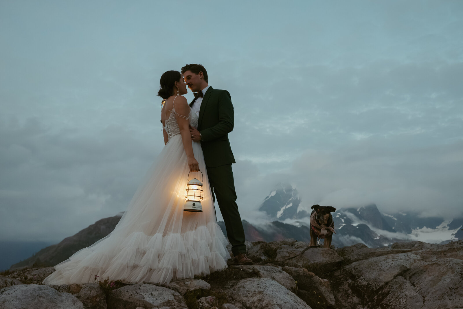 Brianna & Matthew’s full day elopement in North Cascades National Park was wildly beautiful. They spent the morning at te A-frame cabin for the couple session and eloped at sunset in Artist Point. From cuddle session to fun lanterns at blue hour, this adventure perfectly reflected their love, and I’m honored to have captured it.